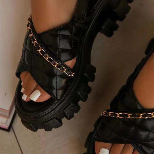 OCW Sandals For Women Summer New Fashion Thick Bottom Chain Opened Toe Leisure Comfort