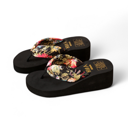 OCW Women Sandals Comfort Silk Thick Sole Floral Summer Outdoor Wedges Flip Flop