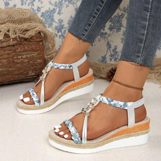 OCW Women Wedge Sandals Leather Rhinestones Design Summer Open Toe Sandals