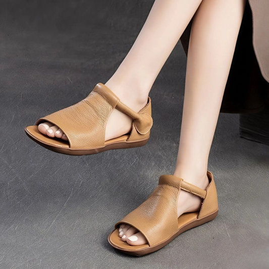 OCW Women Sandals Comfortable Flat Heels Cutout PU Leather Lightweight Minimalism Summer Design
