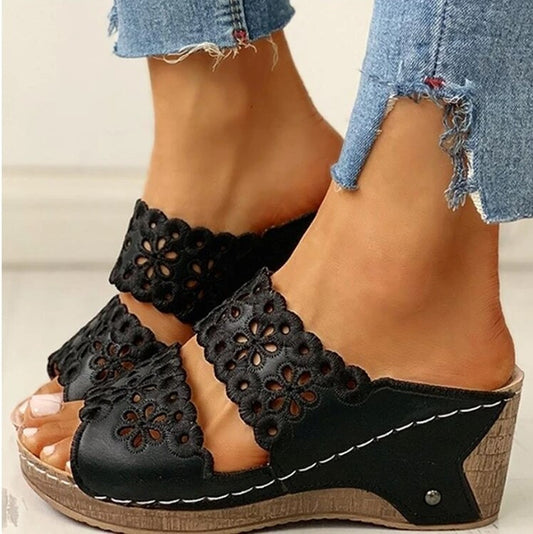 OCW Women Hollow Out Slippers Wedge Platfrom Summer Casual Comfy Flip Flops