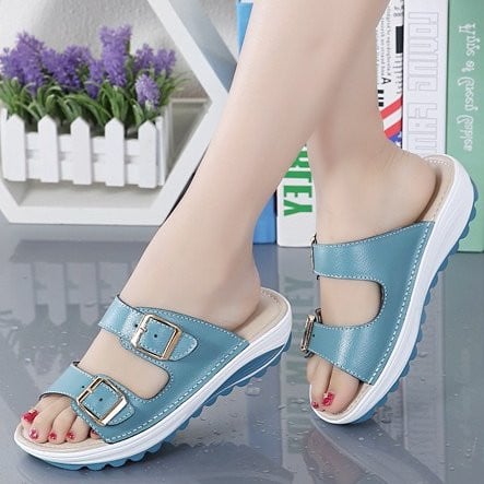 OCW Genuine Leather Slippers Platform Wedges Casual Soft Sandals For Women