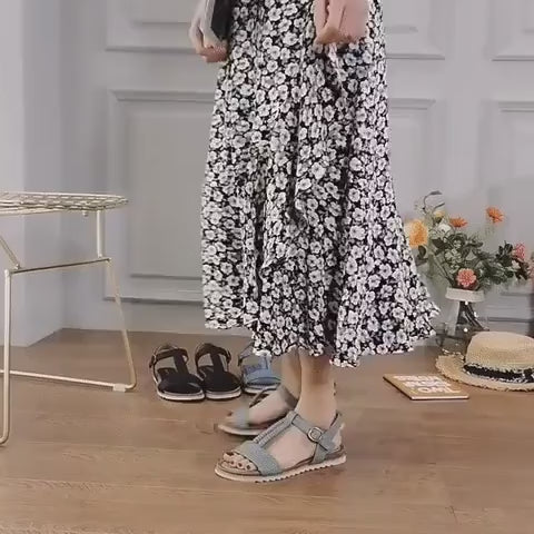 OCW Gladiator Sandals For Women Elegant Genuine Cow Leather Wedge Mid Heel Flower