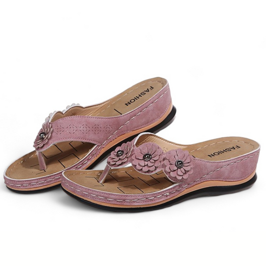 OCW Women Orthopedic Shoes Comfort Leather Flat Floral Summer Flip-flops