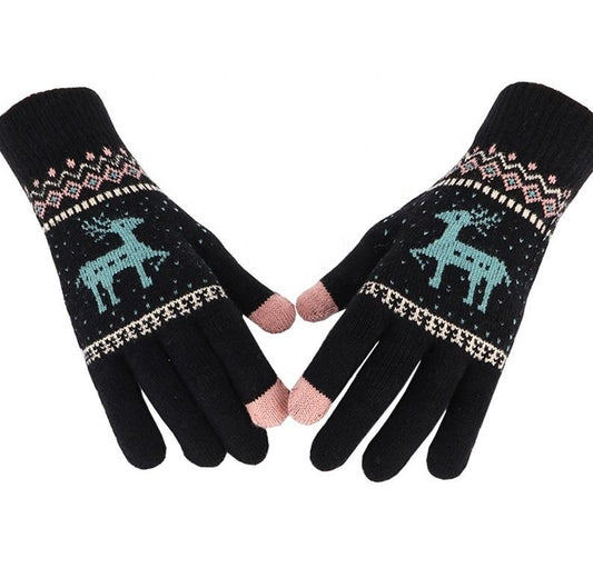 OCW X-Mas Thermal Gloves Knitted Thick Super Warm Deer Printed Full Fingers Touch Screen