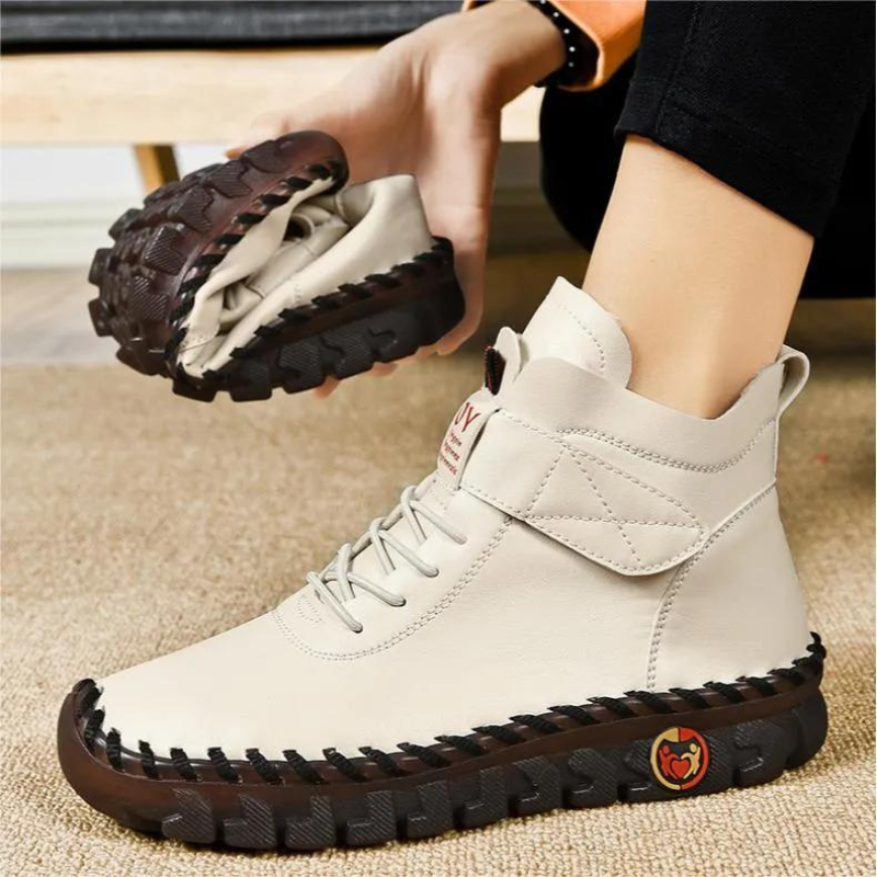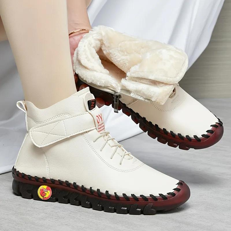 OCW Orthopedic Shoes for Women Comfortable Flat Sewing Warm Leather Ankle Boots