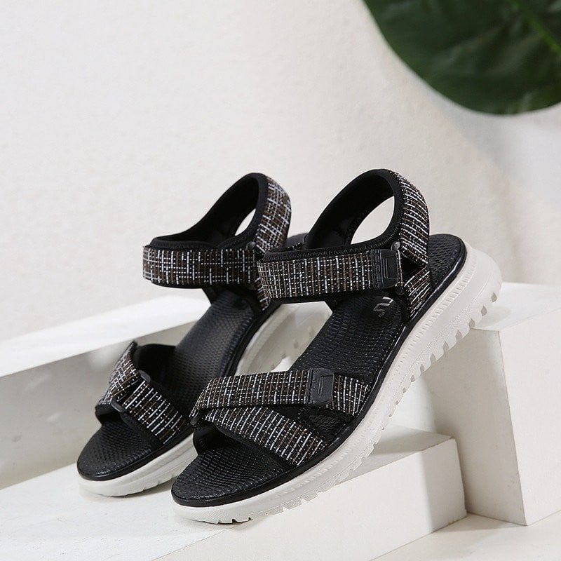 Sandals' outsole includes a non-skid grip design that spans the whole bottom surface for optimum traction, suitable for daily usage, as well as excellent efficiencies for sports like jogging and medium hiking.