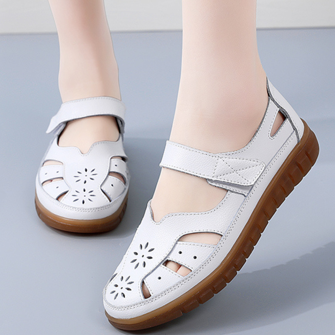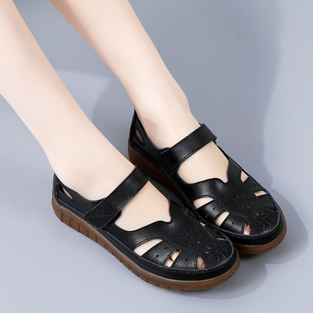 The airy cut-out design enhances ventilation, preventing overheating and moisture buildup. Perfect for warm days, these sandals keep your feet dry and comfortable for all-day wear.