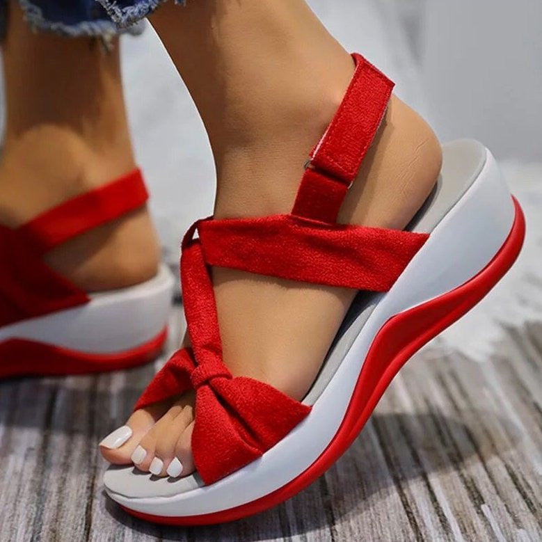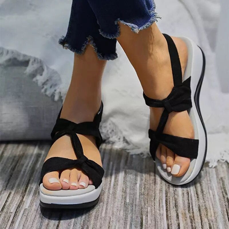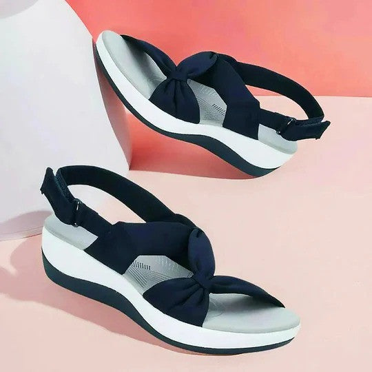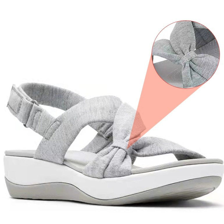 The upper's softness adds an elegant image for the sandal with a lovely bow-knot, while the fabric's breathability is ideal to wear during hot days without leaving a sticky feel on your feet.