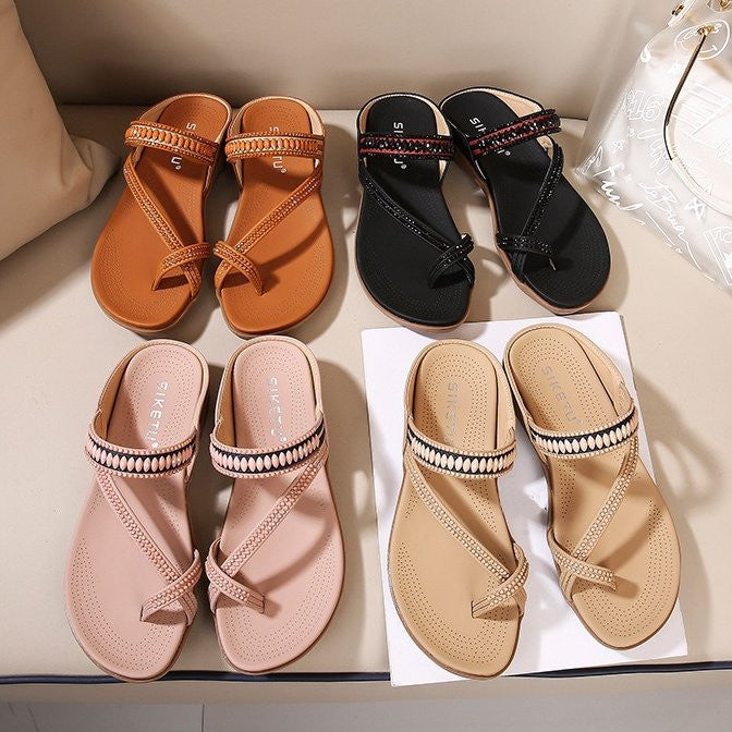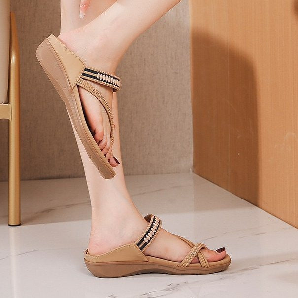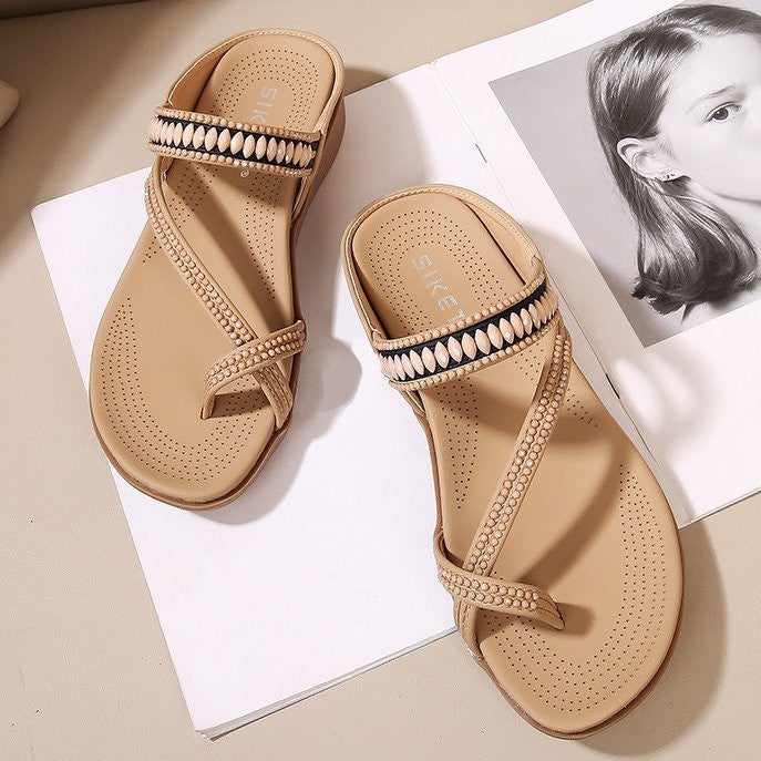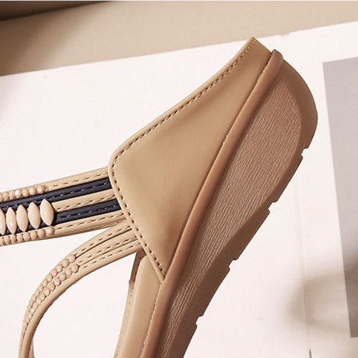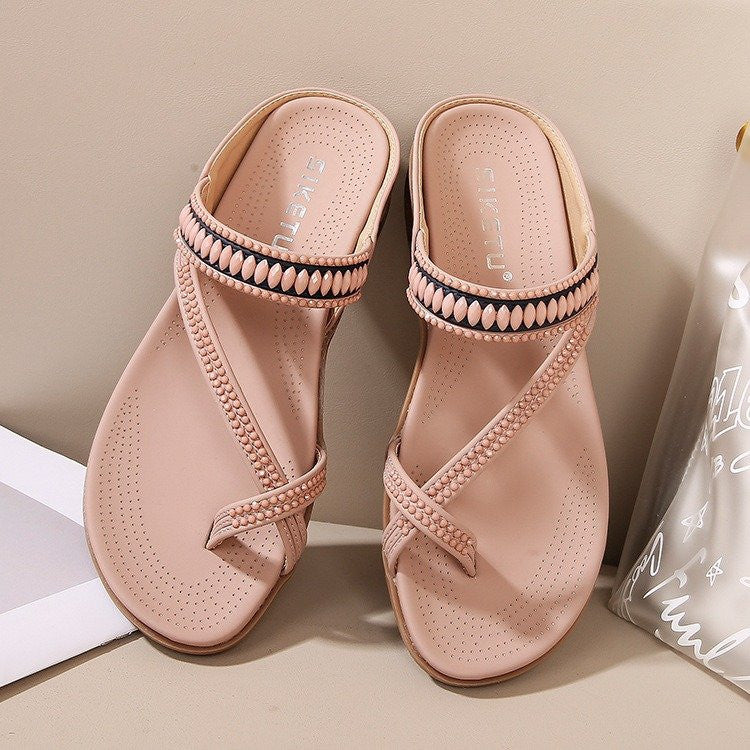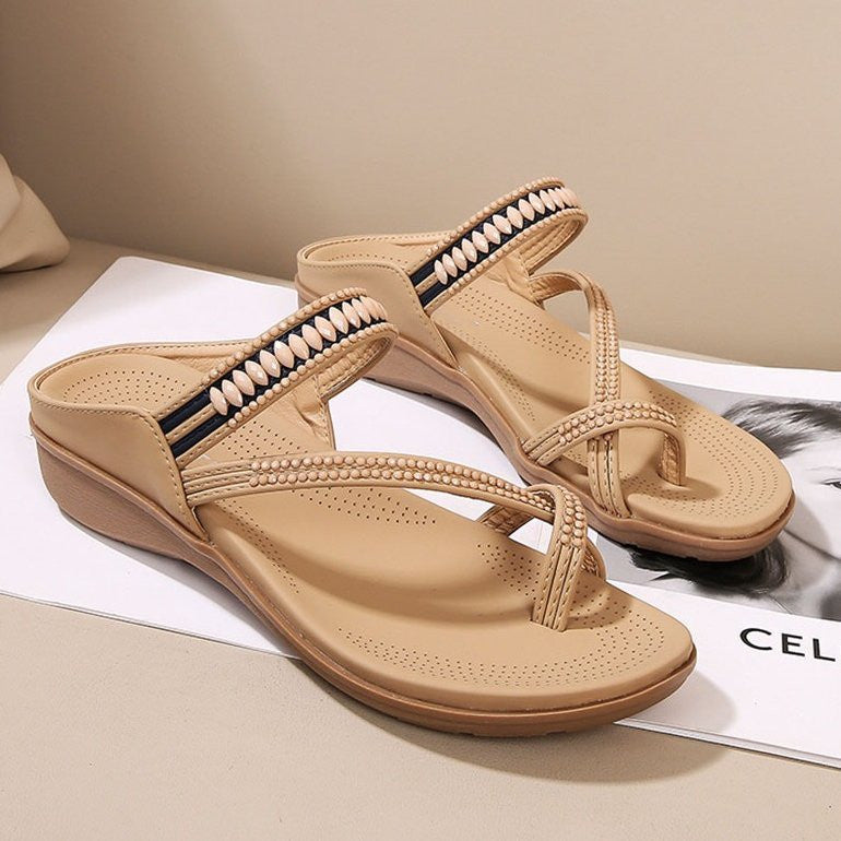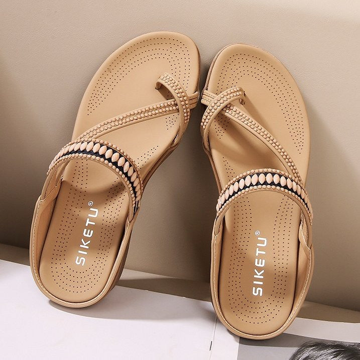 OCW Women Retro Flip-flops Beaded Cushion Summer Orthopedic Sandals