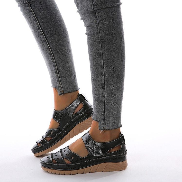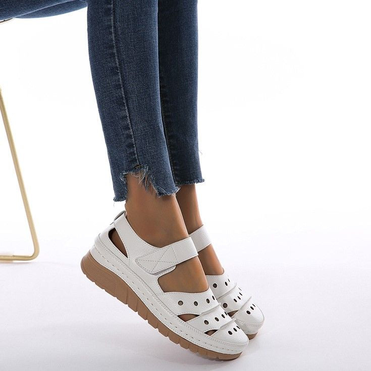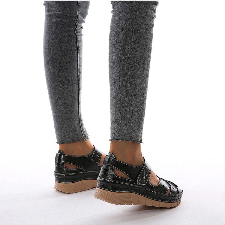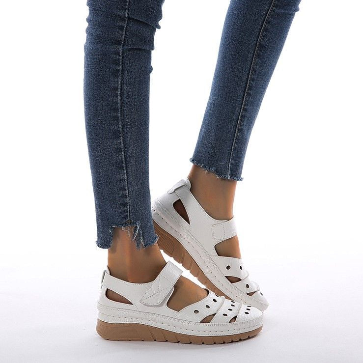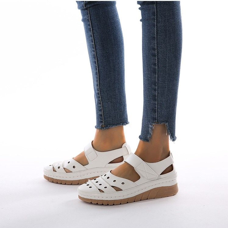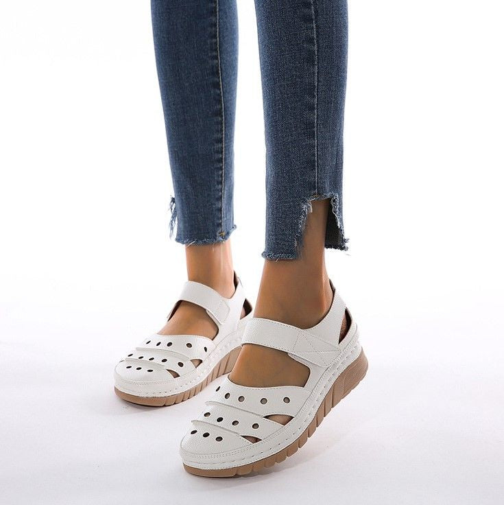 OCW Women Retro Hollow Shoes Causal Breathable Round Toe Wedges Design