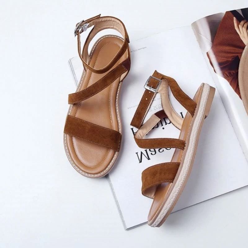 OCW Suede Sandals Women Breathable Comfy Low Heel Open Toe Design