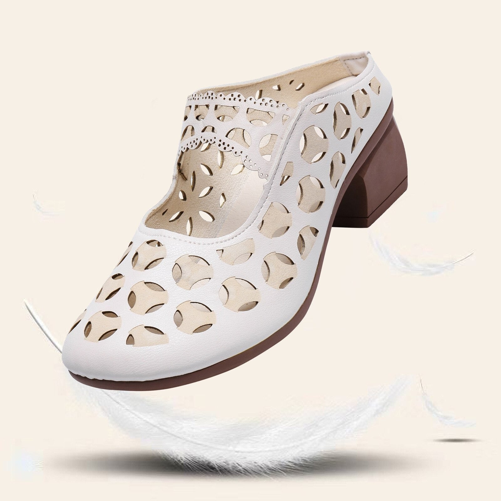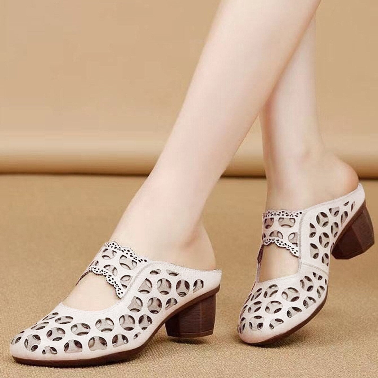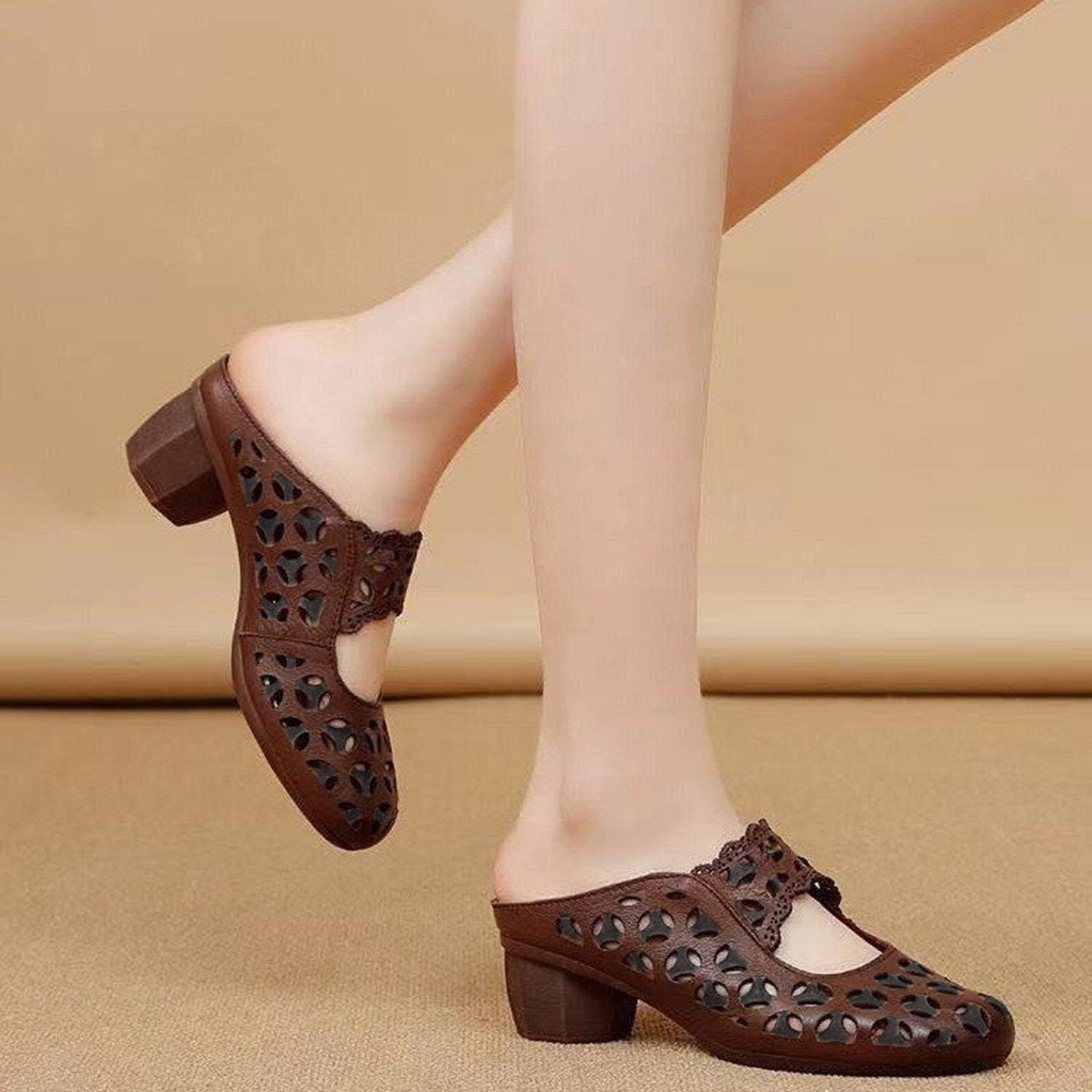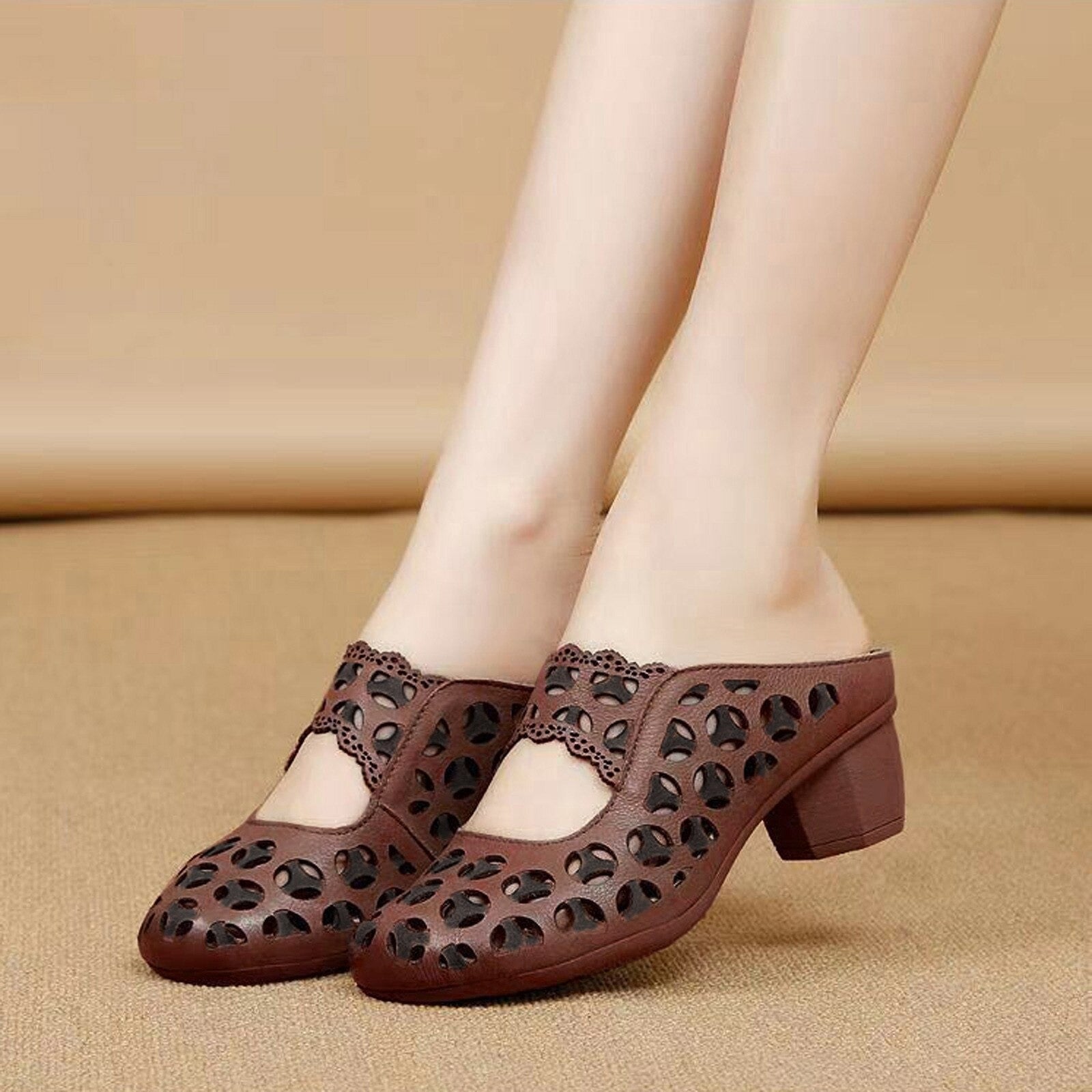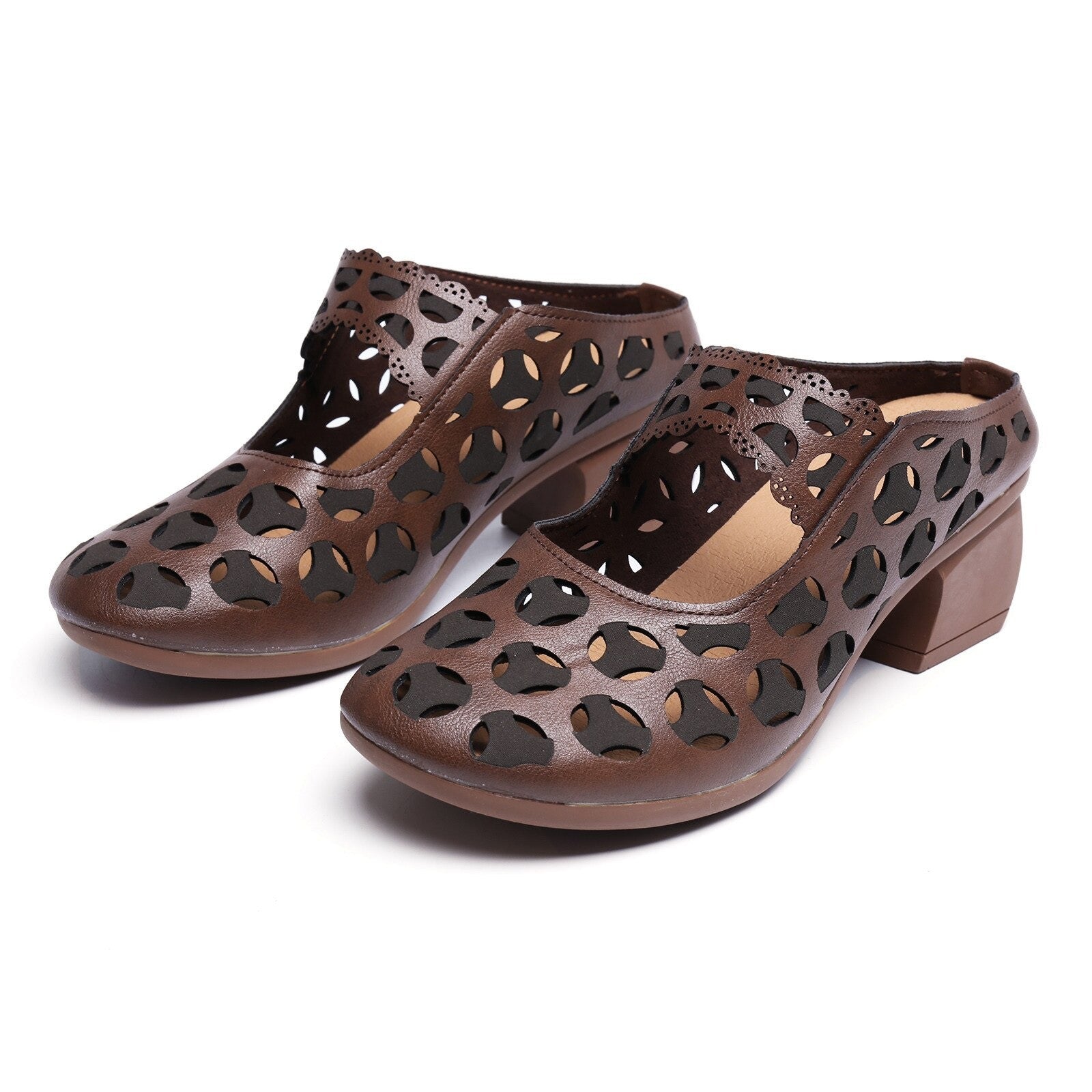 OCW Summer Women PU Leather Clogs Round Head Retro Hollow Breathable Shoes