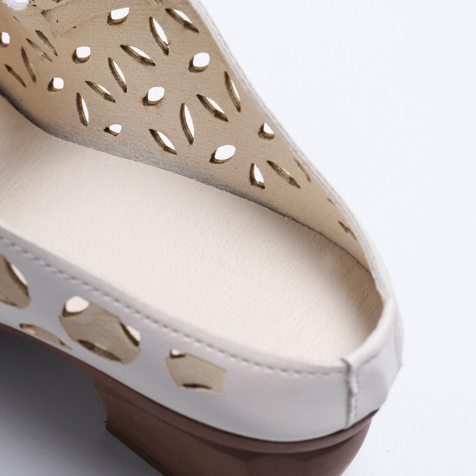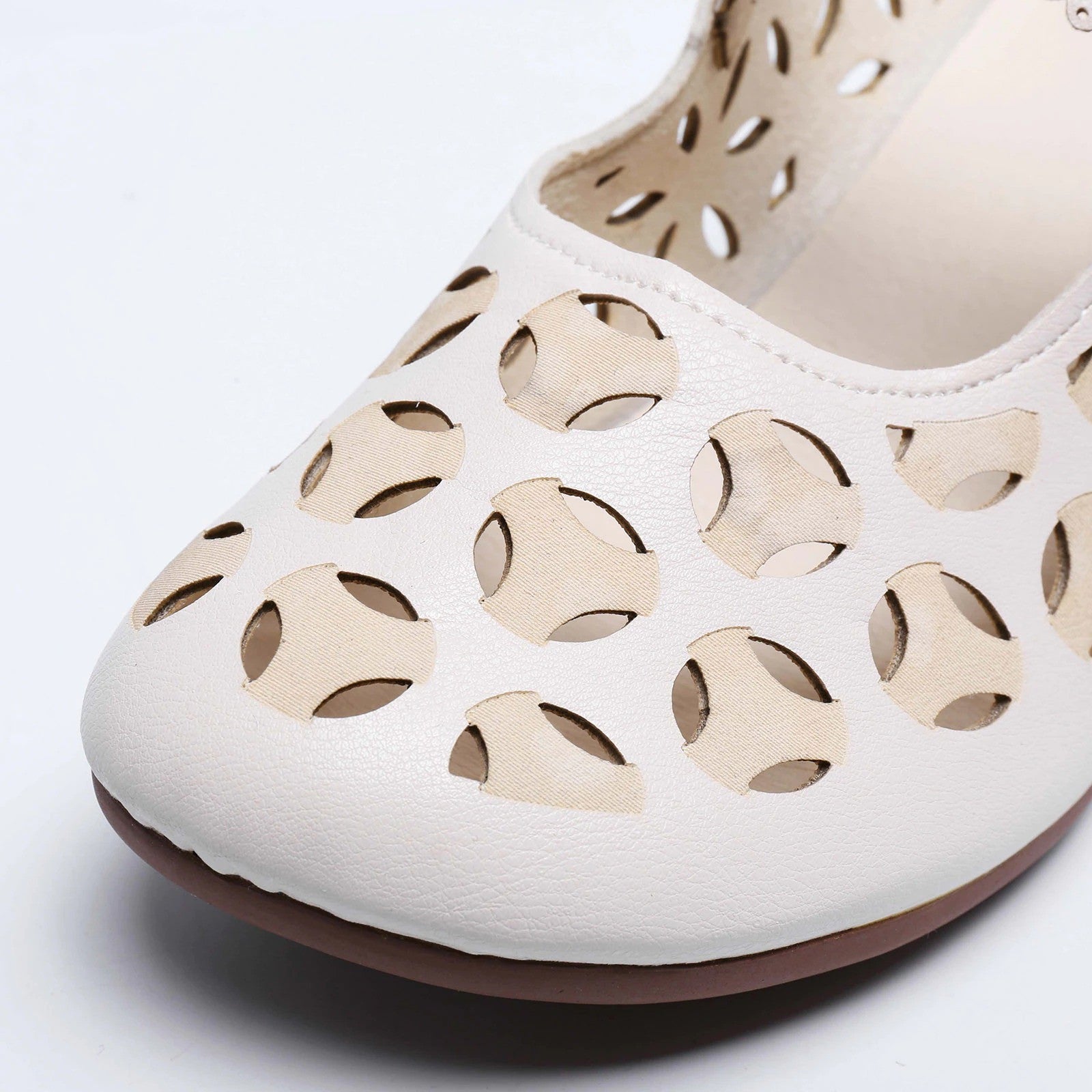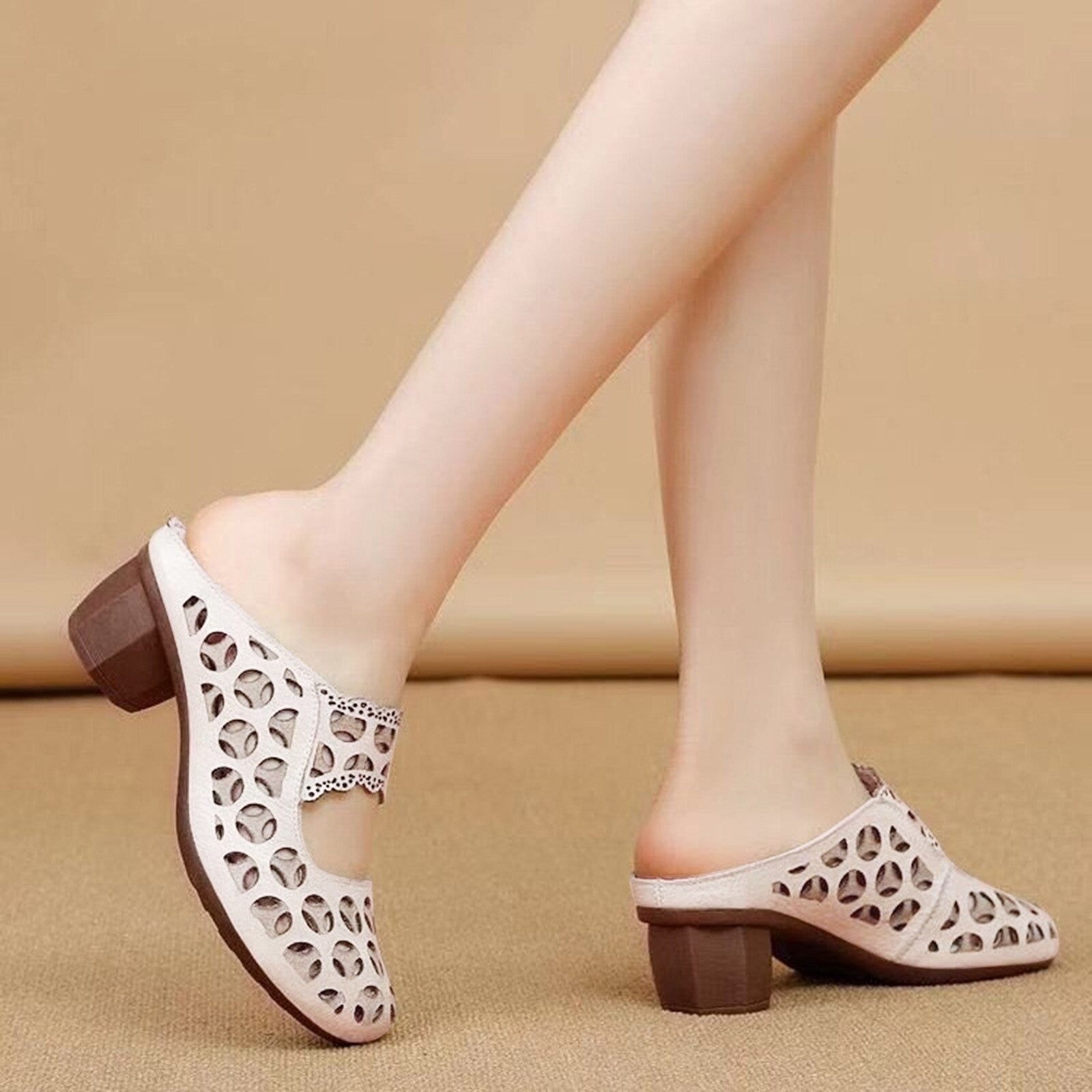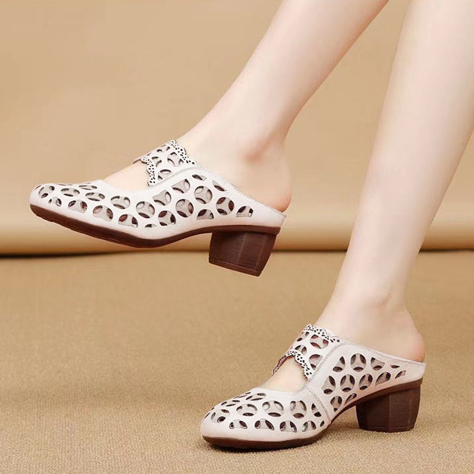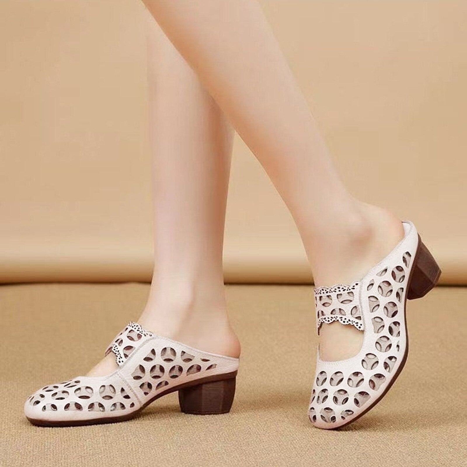 OCW Summer Women PU Leather Clogs Round Head Retro Hollow Breathable Shoes