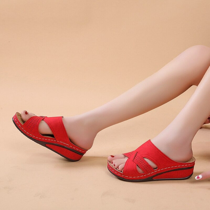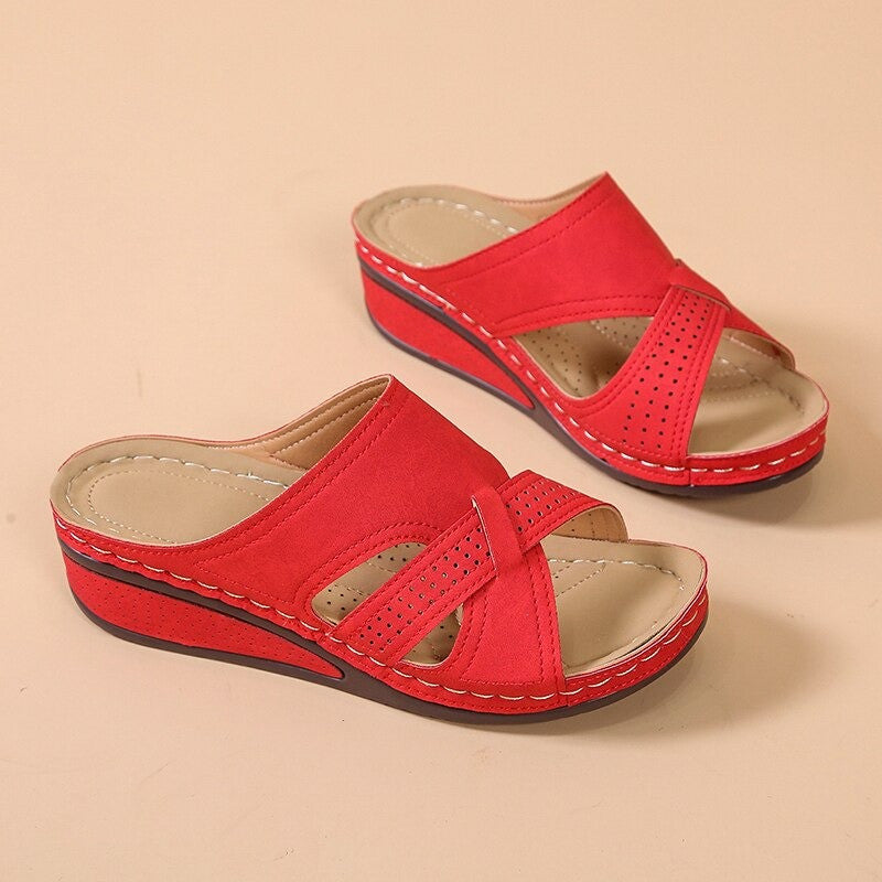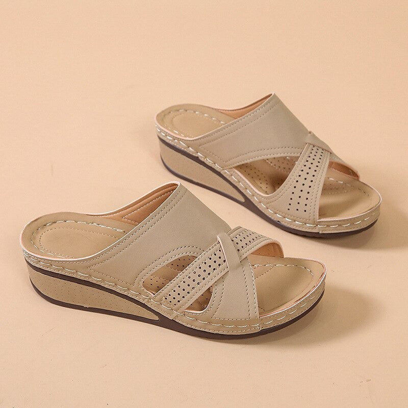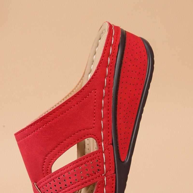 OCW Women Casual Retro Stitching Hand Made Hollow Breathable Comfy Wedges Sandals