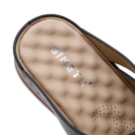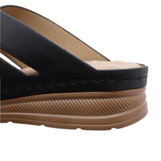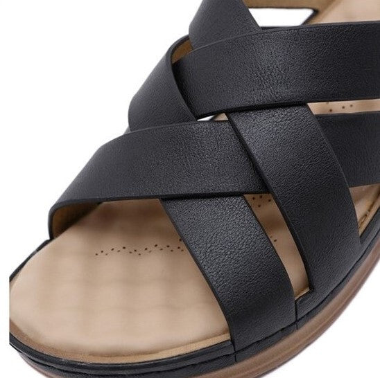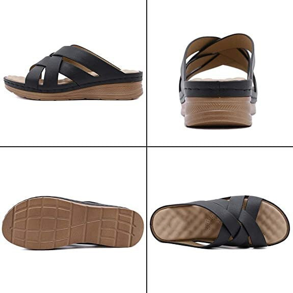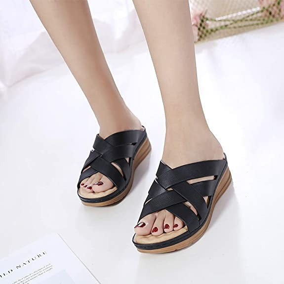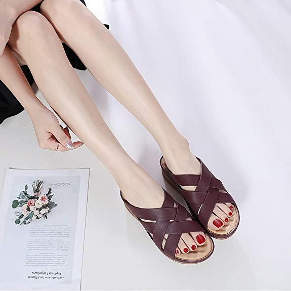 OCW Summer Women Wedge Sandals Vintage Leather Retro Comfortable Sandals