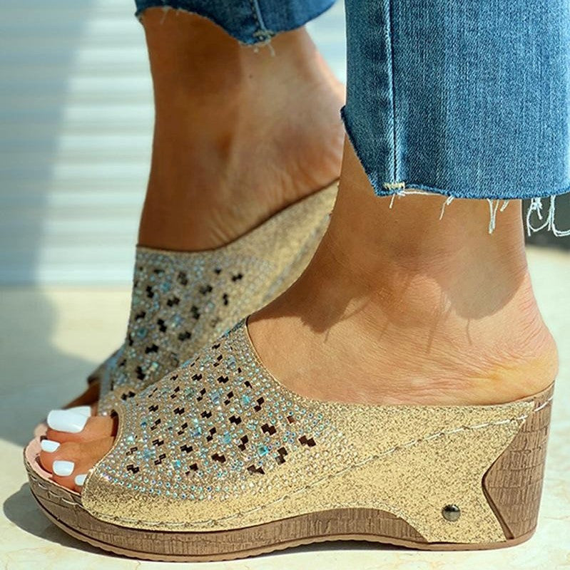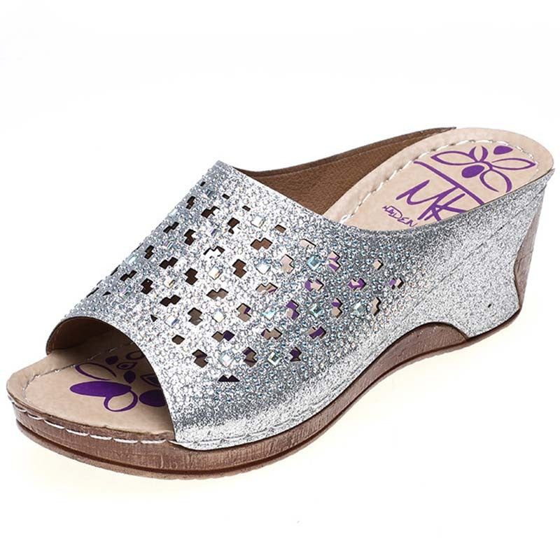 OCW Women Gladiator Sandals Bling Rhinestone Platform Wedges Comfortable Casual
