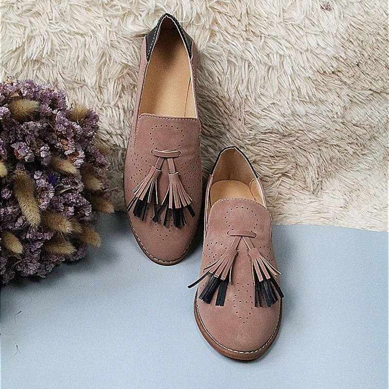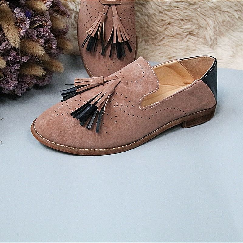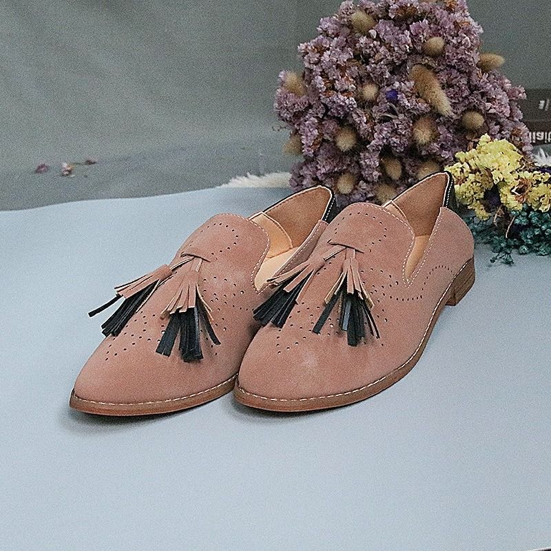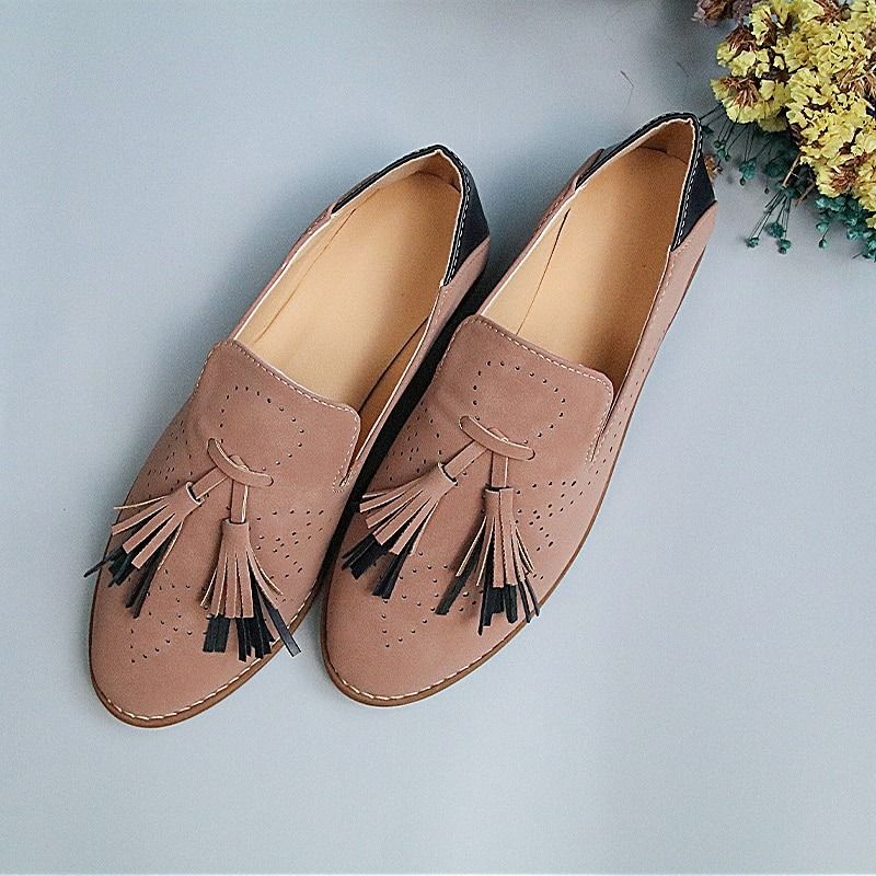 OCW Breathable Suede Women Loafers Tassel Round Toe Leather Lazy Shoes