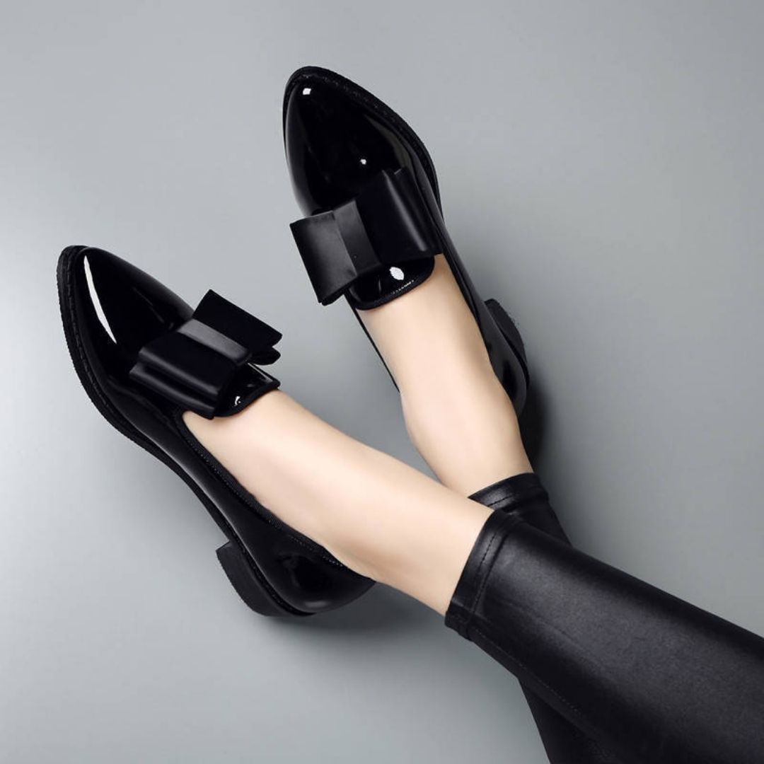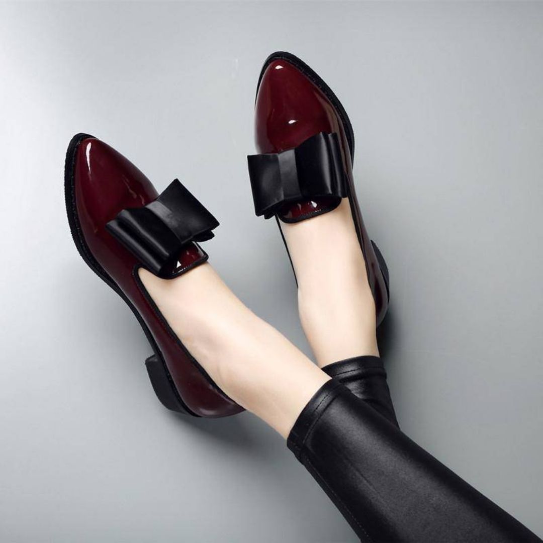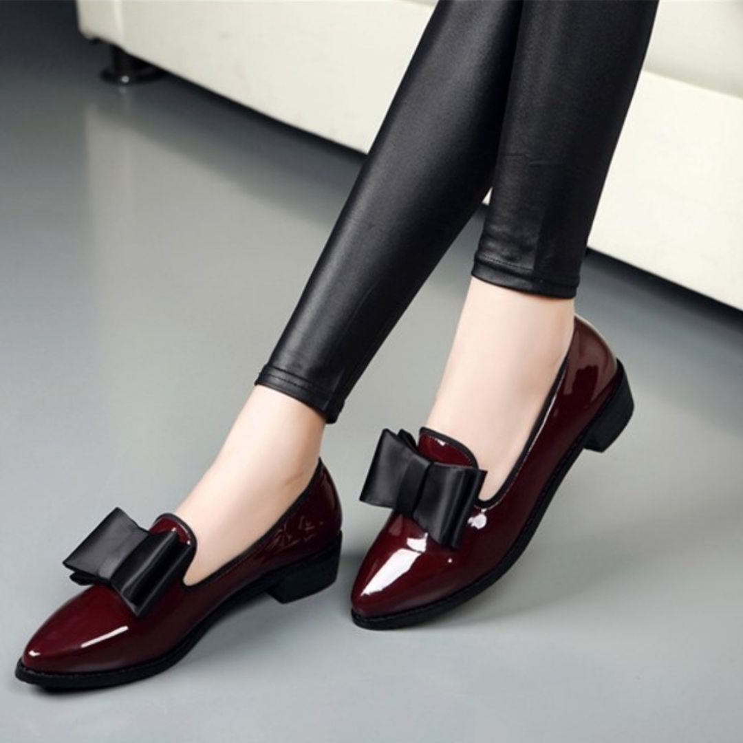 OCW Women Premium Leathers Loafers Pointed Tow Bow Tie Shoes