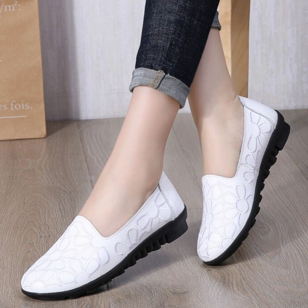 OCW Women Slip On Genuine Leather Made Embroidered Neck Comfortable Daily Shoes